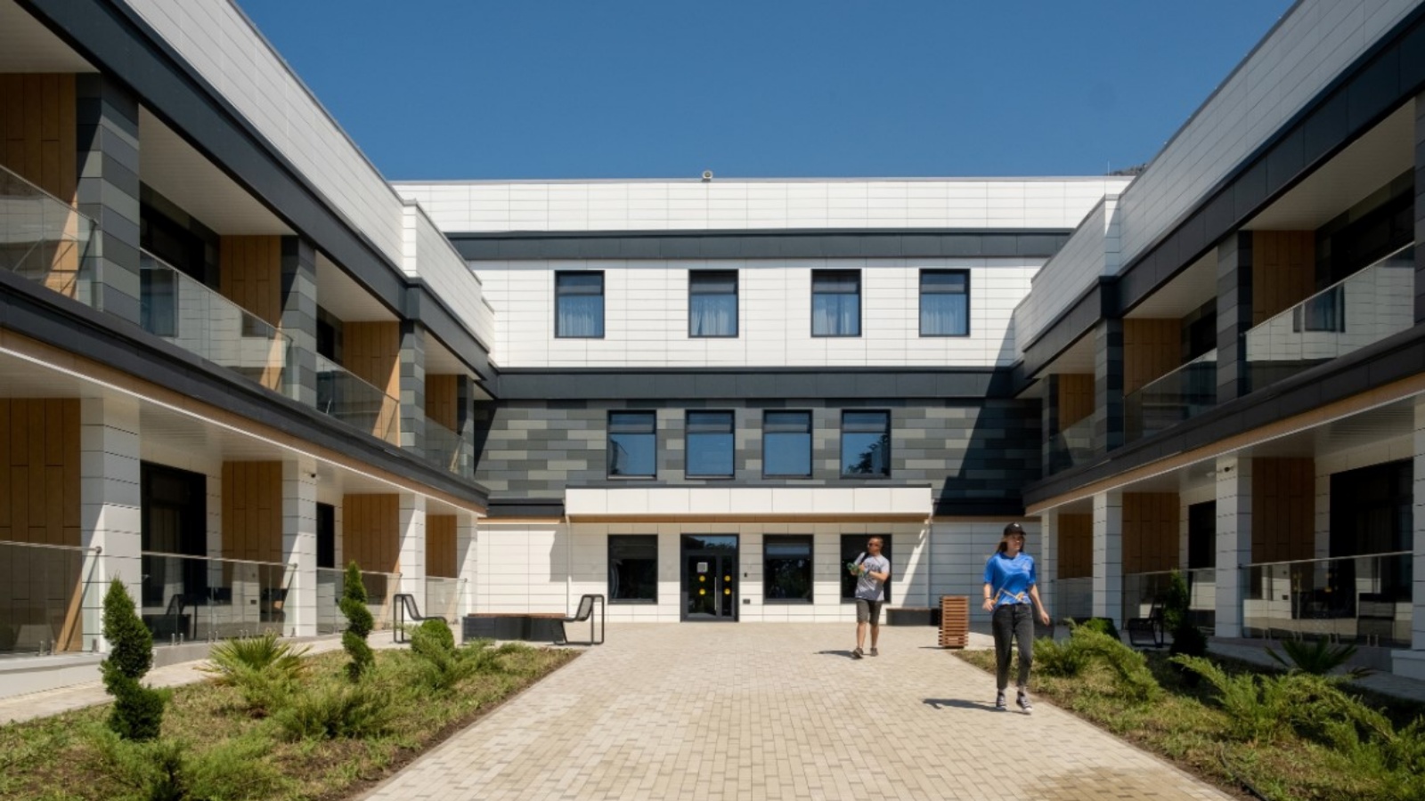 — Напротив спортивного комплекса располагается образовательный клуб с конференц-залом на 260 человек, 5 учебными классами и библиотекой.
