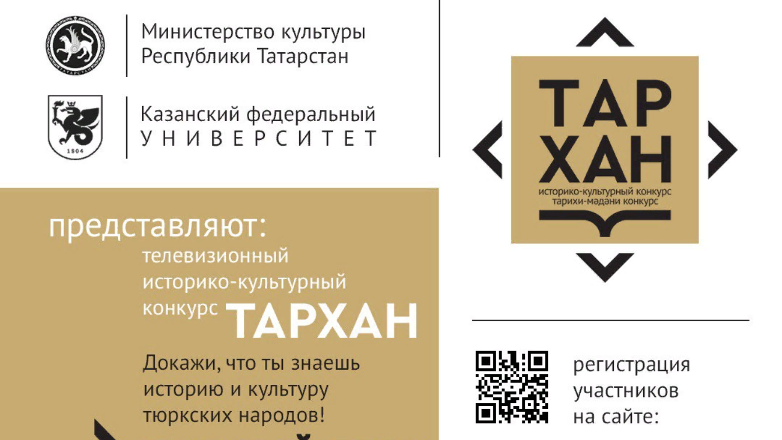 Прими участие в историко-культурном конкурсе «ТАРХАН». Докажи, что ты знаешь историю и культуру тюркских народов. Пройди два тура – заочный и очный телевизионный. Заяви о себе! Победи соперников, стань призером - и поступи на бесплатной основе на профиль «История тюркских народов» Института международных отношений Казанского (Приволжского) федерального университета