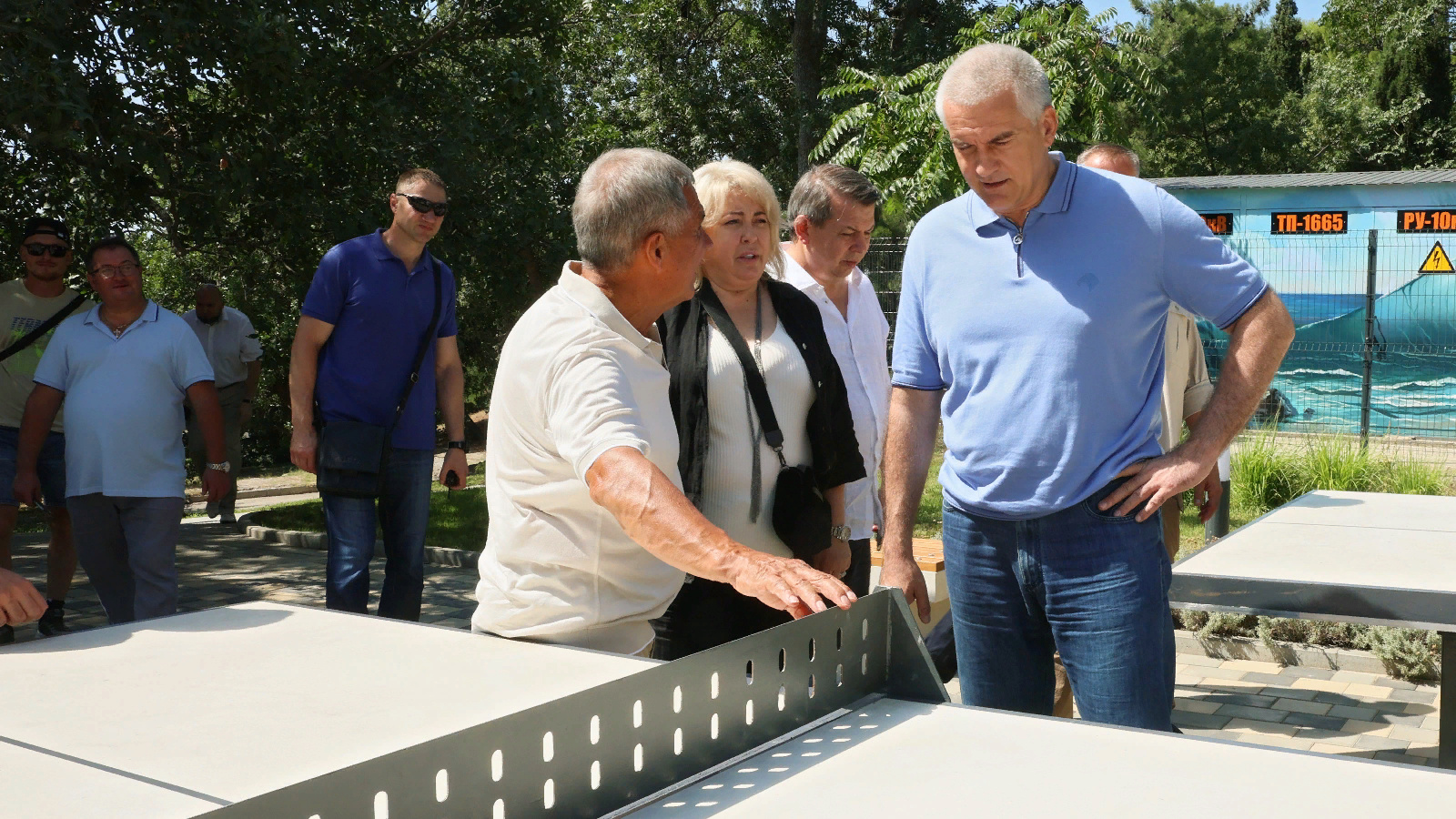 Совместно с Главой Республики Крым Сергеем Аксеновым Рустам Минниханов оценил качество работ по капитальному ремонту клуба и по благоустройству сквера, расположенного рядом.