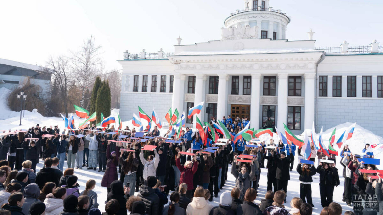 В честь воссоединения Крыма с Россией на площадке перед мультимедийным парком «Россия – Моя история» в Казани прошел массовый флешмоб. Участники выстроились в слова «Крым», «Россия» и «Навсегда», держа в руках таблички цветов российского триколора, размахивая флагами России и Татарстана.